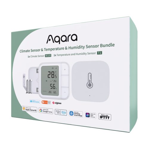 Aqara Climate W100 & Temperature Sensor T1 Bundle offers accurate temperature and humidity monitoring, multi-room coverage, and smart home automation integration.