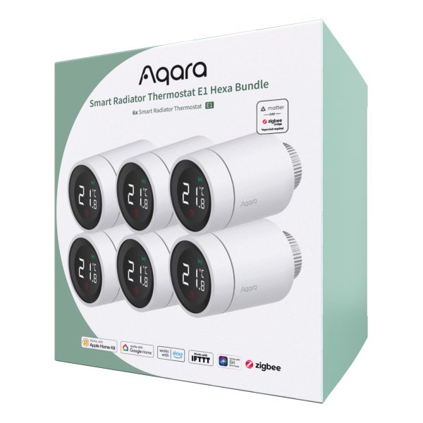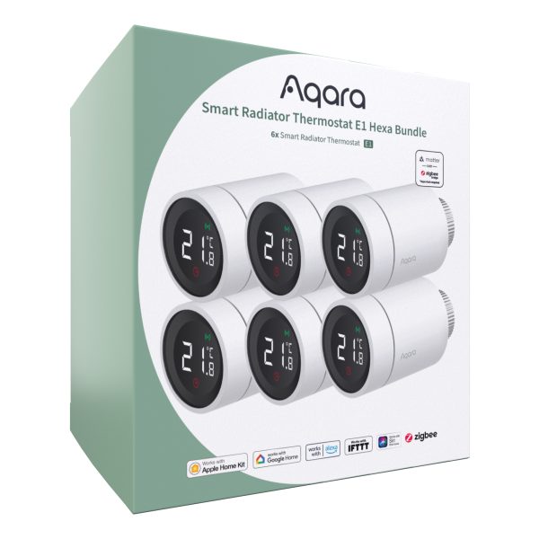 This bundle included 6 Aqara Radiator Thermostat E1.  The Radiator Thermostat that can be used with the majority of water radiators* such as space heaters, towel warmers or even warm floors. Takes the readings from external Aqara sensors and adjusts the heating power according to them.