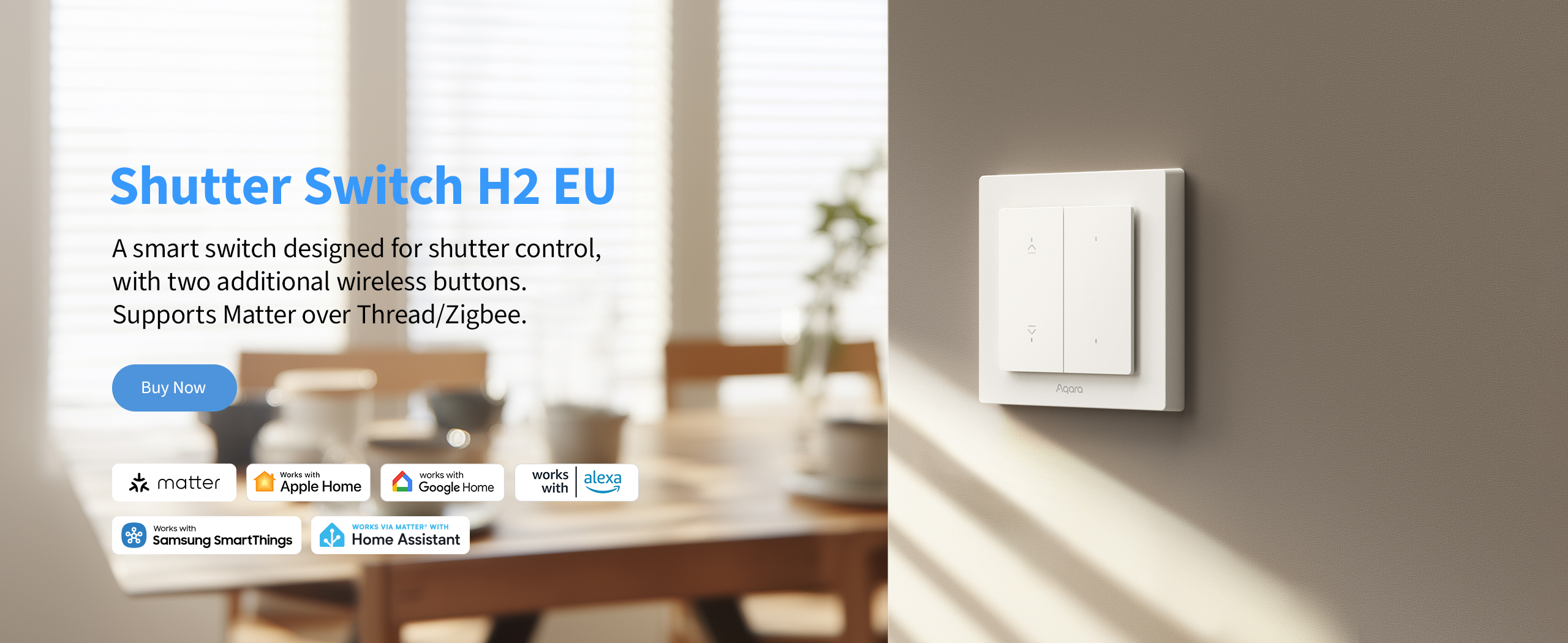 Bring comfort and convenience to your smart home with the Aqara Shutter Switch H2 EU. Automate your blinds and shutters for the perfect light and privacy, all with seamless control through Matter, Thread or Zigbee.