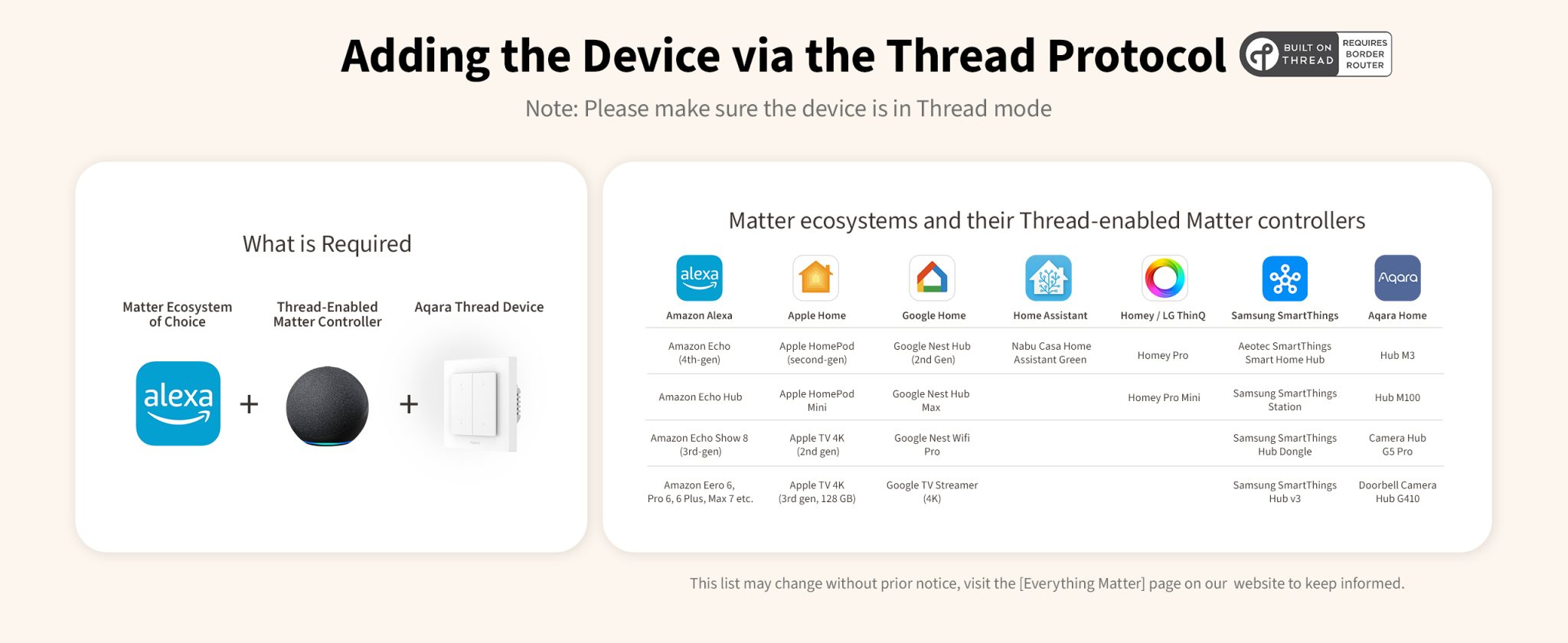 Requires an Aqara hub with Thread Border Router capability (e.g., Hub M3):