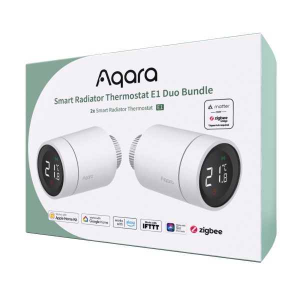 This bundle included 2 Aqara Radiator Thermostat E1. The Radiator Thermostat that can be used with the majority of water radiators* such as space heaters, towel warmers or even warm floors. Takes the readings from external Aqara sensors and adjusts the heating power according to them.