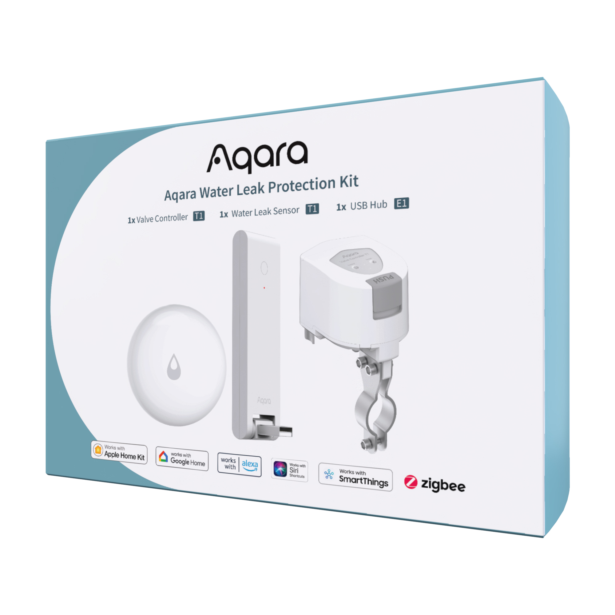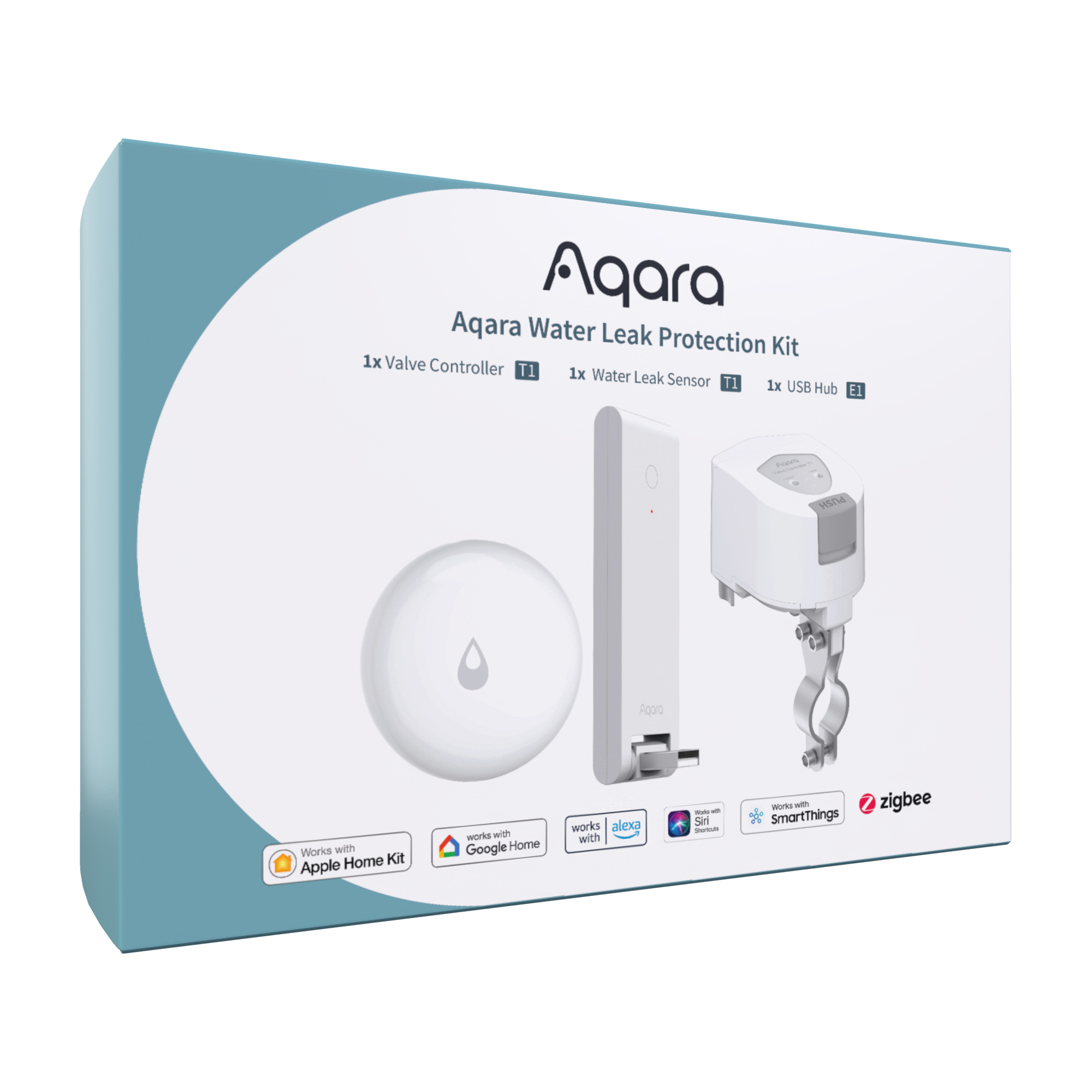 • 1 x Aqara Valve Controller T1 – As soon as a leak is detected, the valve controller automatically shuts off your main water supply to prevent flooding and property damage.