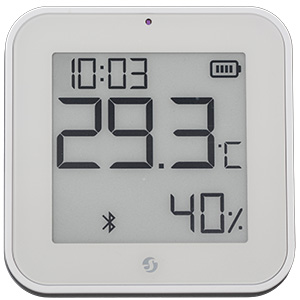 The Shelly BLU H&T Display ZB is a battery powered environmental sensor featuring a clear e paper display that shows real time temperature, humidity, light level and a digital clock in one compact device.