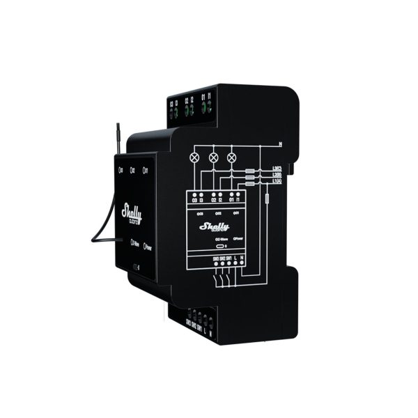 The Shelly Qubino Wave Pro 3 is a three‑phase, three‑channel relay capable of handling up to 48 A, with two outputs rated at 16 A each. Designed for DIN‑rail installation inside a junction box, it provides professional-level control of existing electrical systems, including advanced smart lighting setups and efficient climate management. By automatically switching off non‑essential, high‑consumption devices, the Wave Pro 3 can also help reduce operational costs in commercial environments.