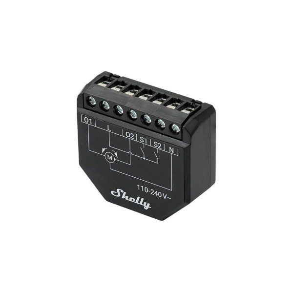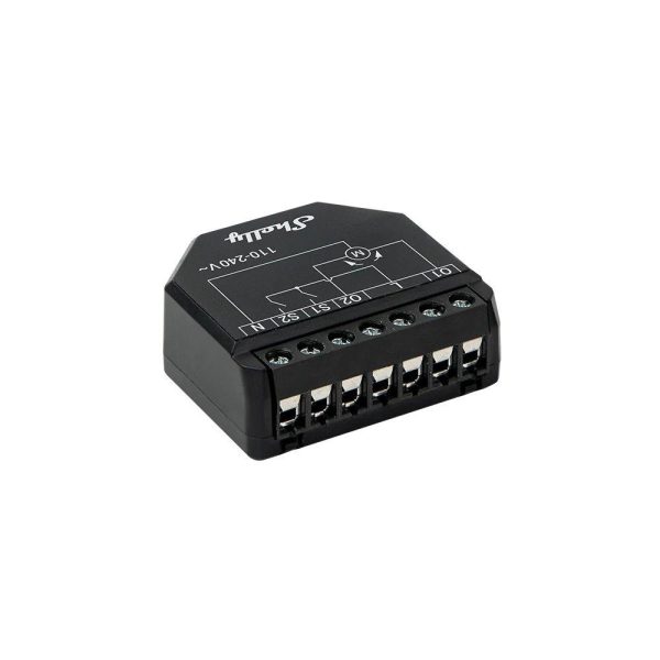 The Shelly Shutter is a compact cover controller with built‑in power monitoring, designed to manage shutters, shades, and blinds through a smartphone, tablet, PC, or home automation system. It can operate independently within a local Wi‑Fi network or be integrated with cloud-based home automation platforms. The device also supports Venetian blinds.