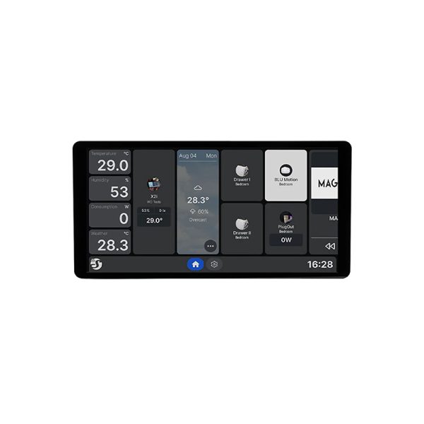 Shelly Wall Display X2i is a smart home control panel with a 6.9” colour display and interchangeable power base. It comes with power base that provides switching functionality for one output load circuit.