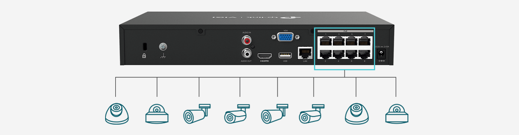 4K HDMI video output and 16MP decoding capacity, the VIGI NVR1008H has sharp image definition up to 8MP and an 8-channel display will ensure that you capture every detail, from every angle.